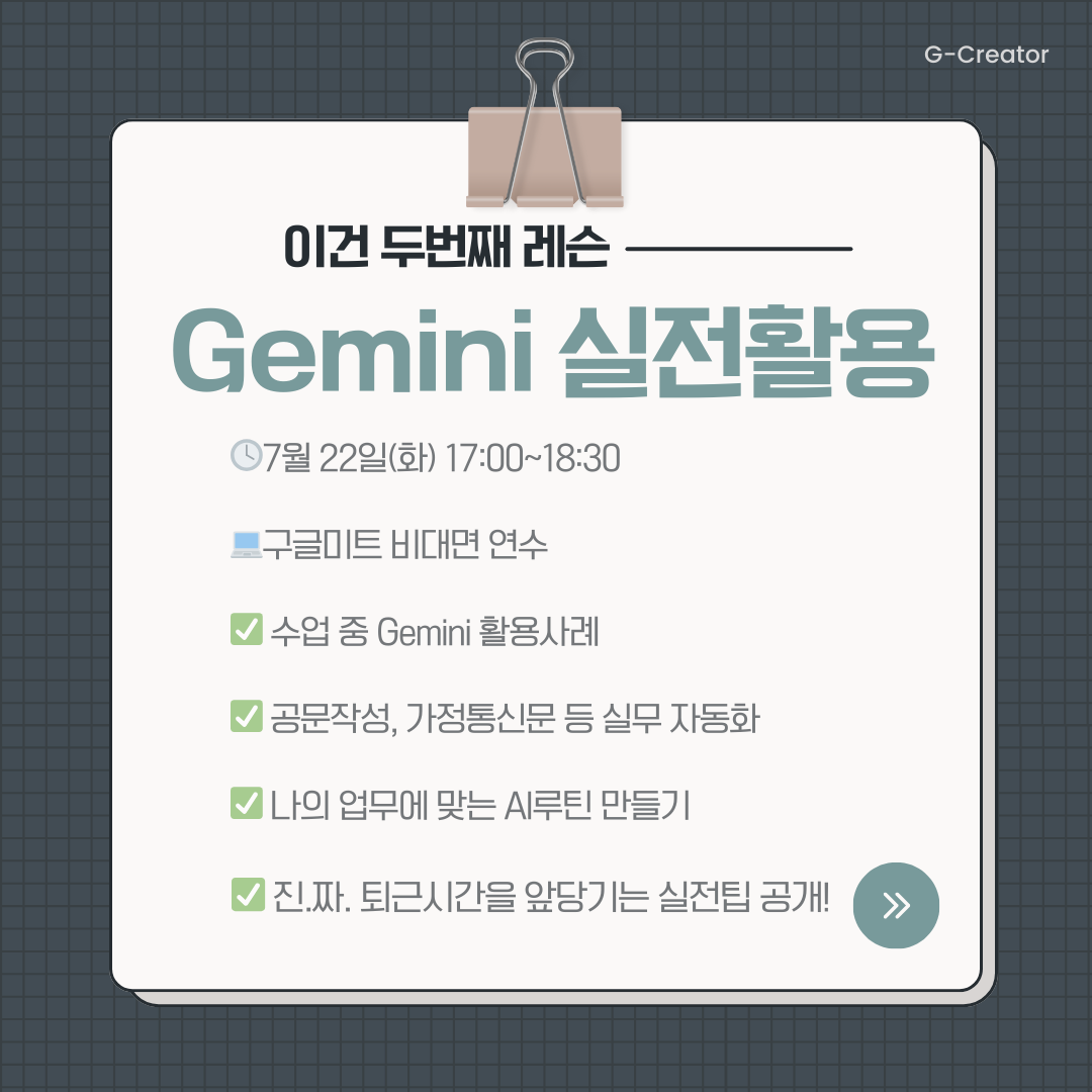 Gemini AI를 활용한 수업 혁신 및 업무 경감 아이디어를 얻을 수 있습니다.