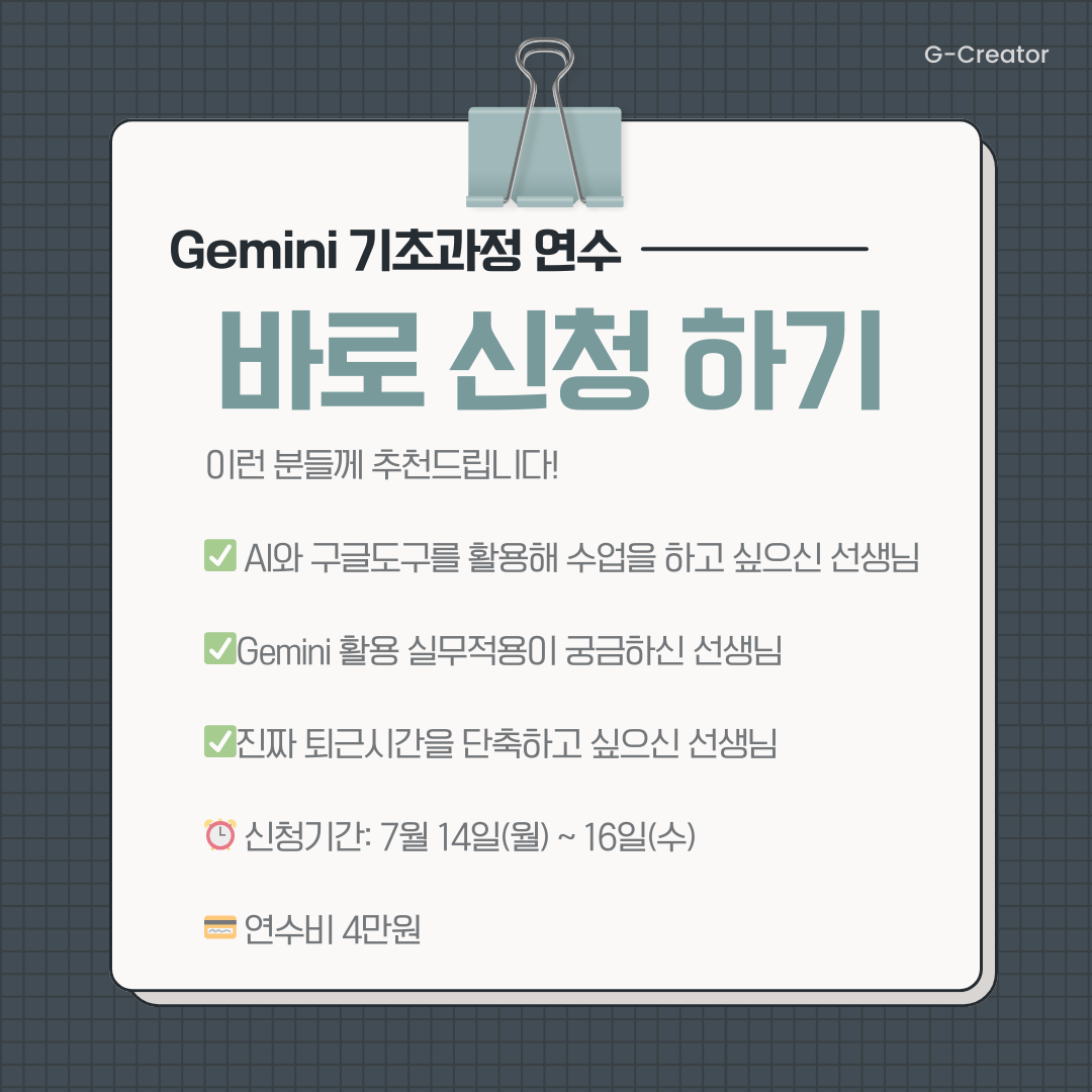 지금 바로 Gemini AI 기초과정 자율연수에 참여하여 미래 교육을 선도하세요!